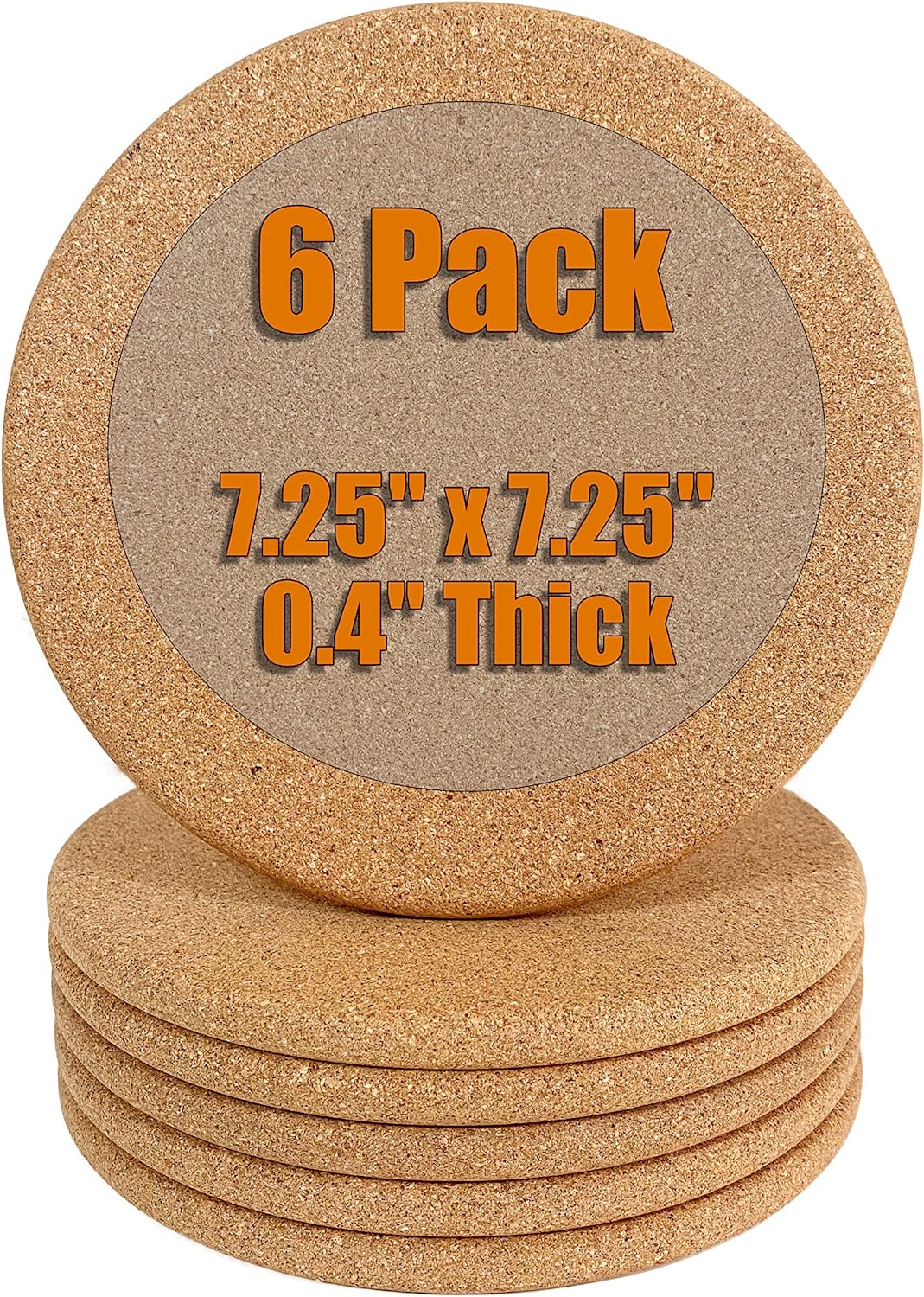 aionemore Cork Trivets for Hot Pots and Pans, 6 Set of 7.25 inches Pot Holders for Housewarming Gifts, Craft Stuff for Bulletin Board and Cork Boards Tiles